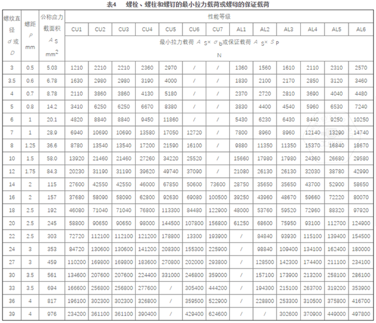 5.4 螺母的保證載荷按表4規(guī)定。